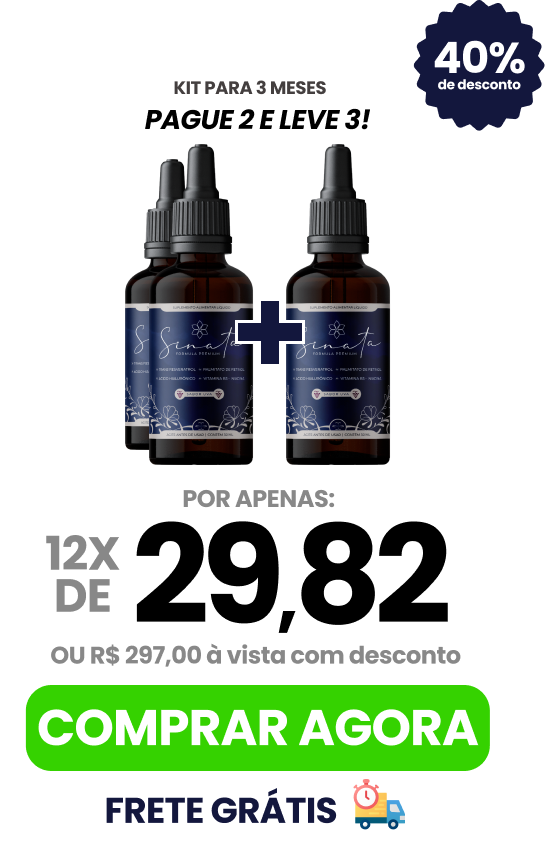 Sinata Gota é diferente de tudo que você já utilizou antes, isso porque é a primeira vez que a ciência consegue juntar tantos ativos poderosos em uma só composição: Ácido Hialurônico + Retinol + Trans Resveratrol + Vitamina K2 e B.